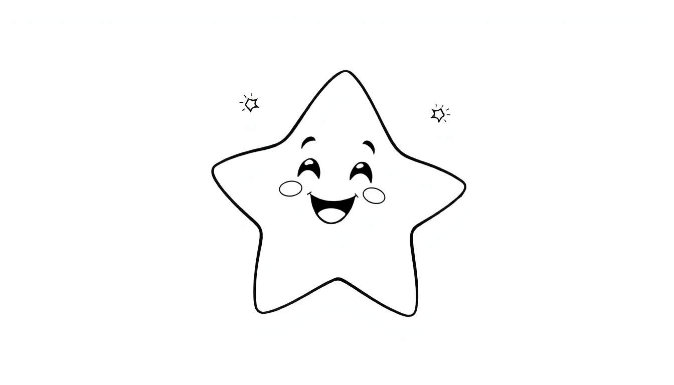 Une page à colorier simple et joyeuse mettant en vedette une étoile souriante et pleine d’énergie. Parfait pour les enfants et les amateurs de coloriage.